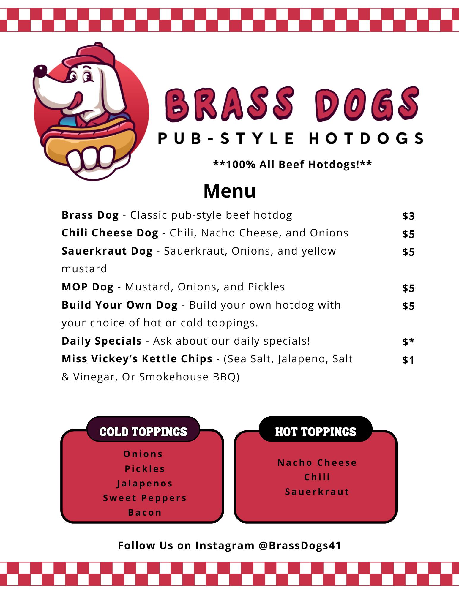 Brass Dogs is popping up in the Brass Collar Kitchen! Get hungry for the finest pub style dogs in the area!